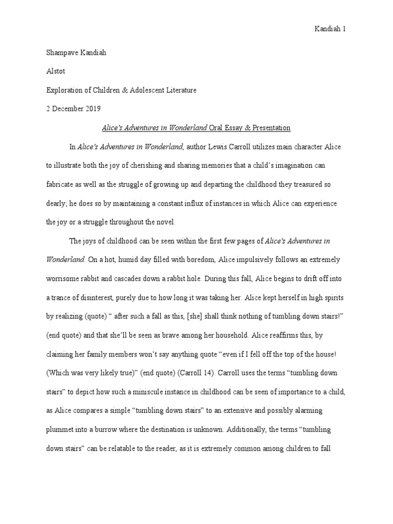 Alice In Wonderland Oral Essay Presentation 1 Pdf Alice Alice S Adventures In Wonderland Through The Looking Glass